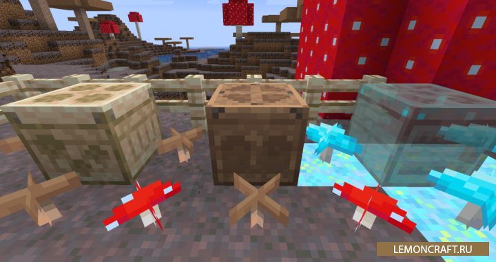 Мод на древесные грибы Enhanced Mushrooms преобразуют грибы в новый вид древесины, из которой вы сможете создавать большое количество стандартных блоков, увеличив тем самым декоративную составляющую игры и количество функциональных предметов. Кроме этого в игре появятся новые виды еды, которые вы сможете приготовить из древесных грибов.